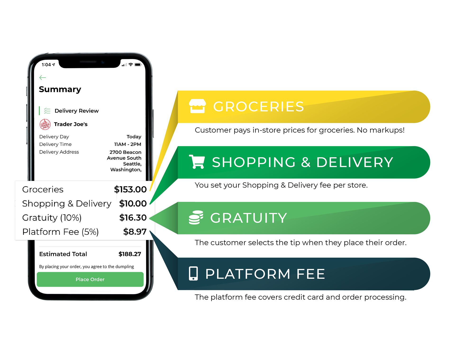 Pricing infographic for dumpling grocery delivery business owners