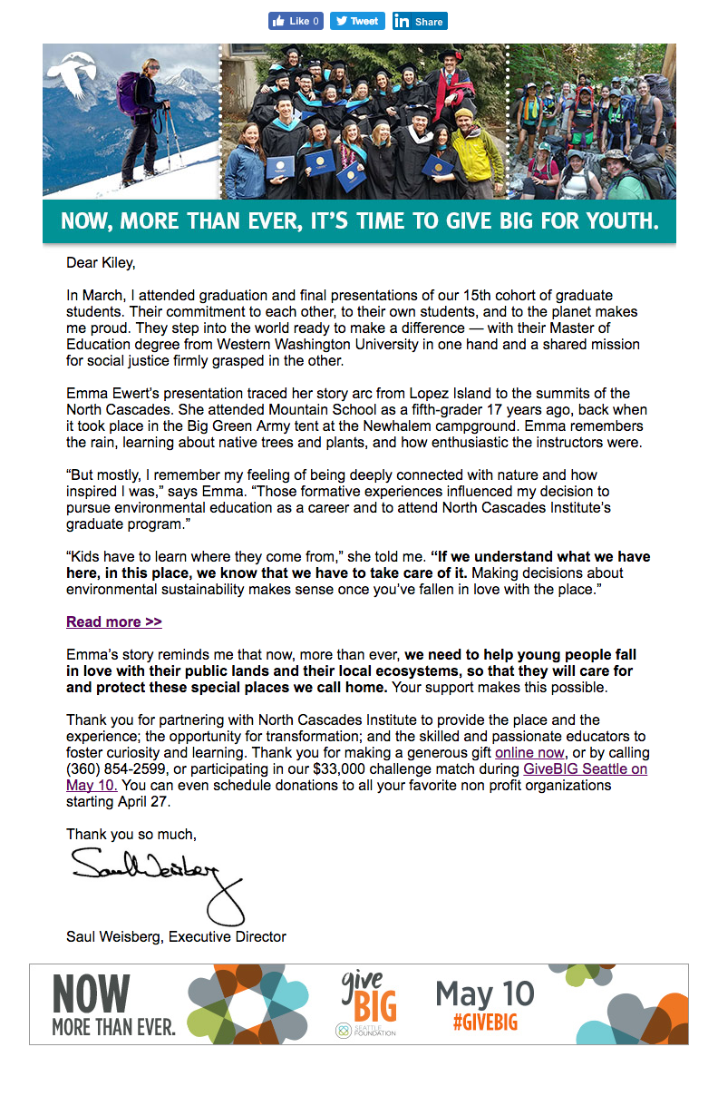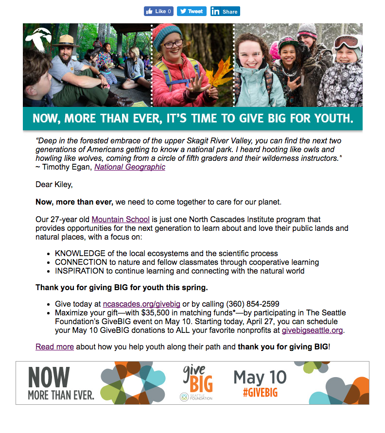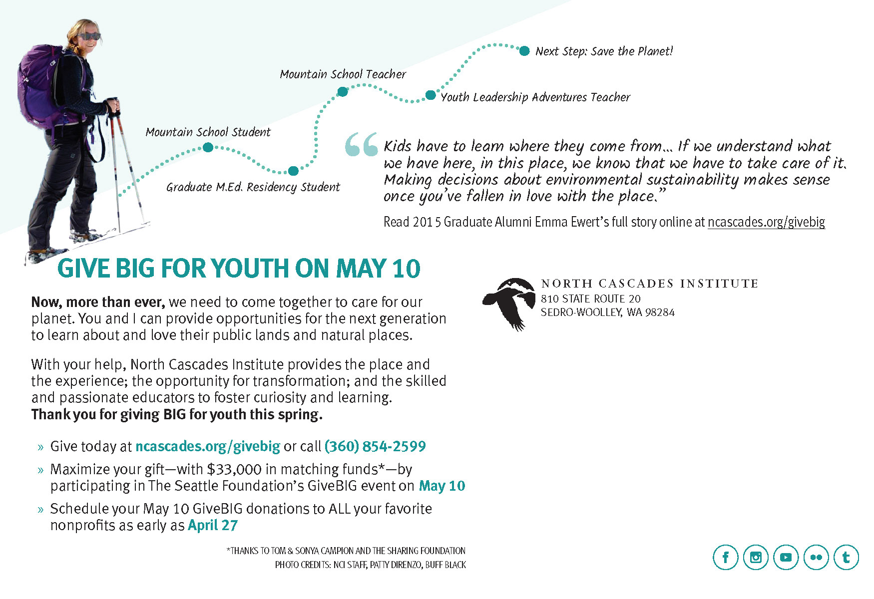 an annual spring fundraising campaign to support youth programs at North Cascades Institute